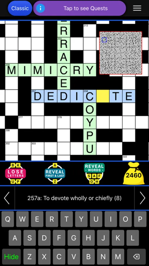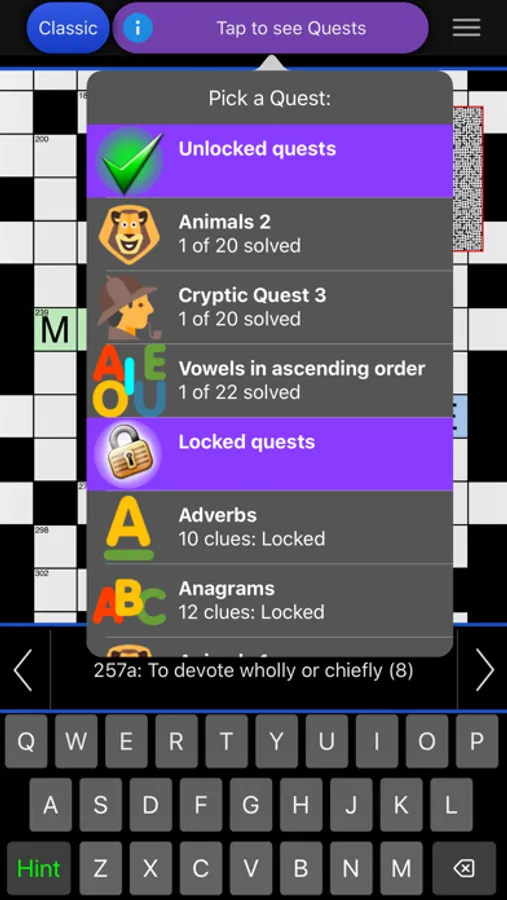 - Quest mode, where each clue has been carefully crafted into a corresponding quest. There are over 80 quests to complete.