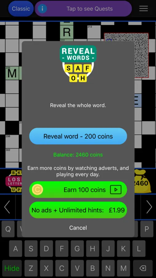 The game features in-app purchases to buy coins for hints, or you can watch reward adverts instead.
