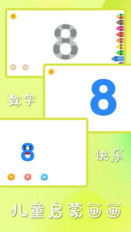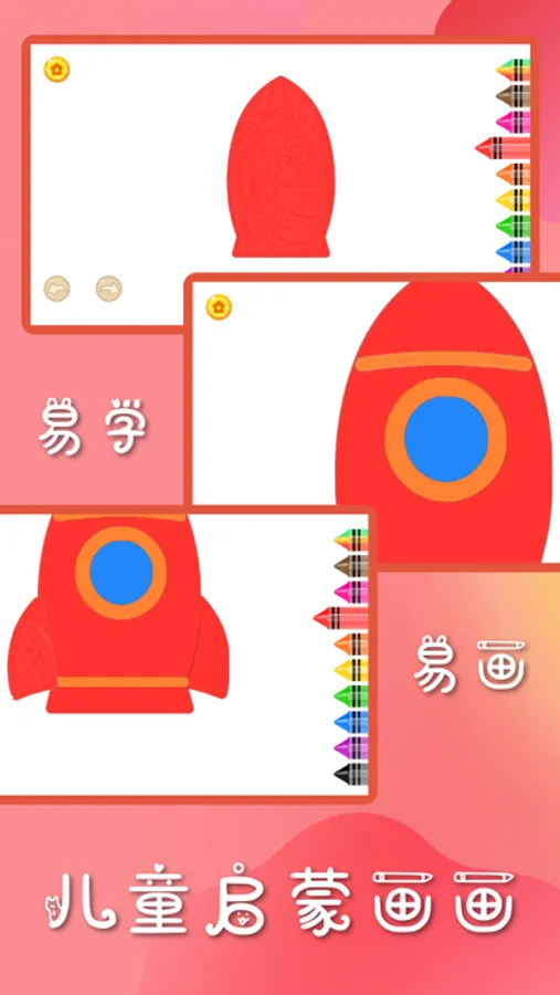 儿童启蒙画画用简单的点线只需手指轻轻一划便可帮助您的孩子学会画出许多简单而可爱的对象,通过益智模式启蒙宝宝早教绘画。