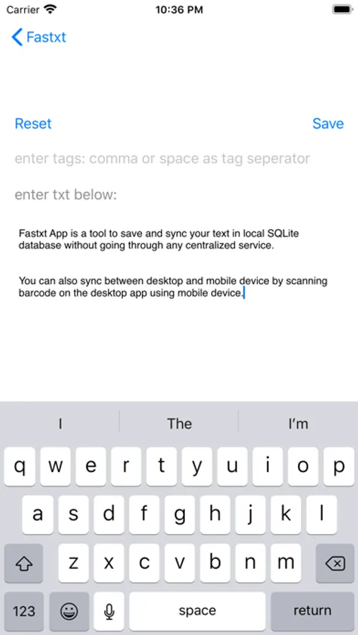 Fastxt App is a tool to save and sync your text in local SQLite database without going through any centralized service.