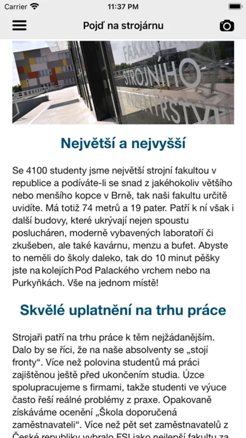 Studuj Strojárnu je oficiální aplikací Fakulty strojního inženýrství VUT v Brně pro uchazeče o studium.