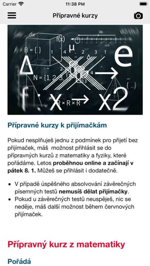 Samostatná část je věnována aktualitám, do kterých jsou zařazeny informace o právě probíhajících soutěžích, dnech otevřených dveří, přijímacím řízení, zápisech ke studiu, imatrikulacích atd. Na ty nejdůležitější akce budete upozornění také formou krátkých oznamovacích Push zpráv.