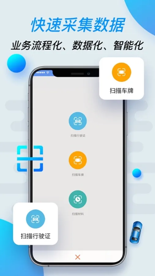 2、扫描行使证,扫描车牌,可以快速采集、录入数据,帮忙业务流程化、数据化、智能化;