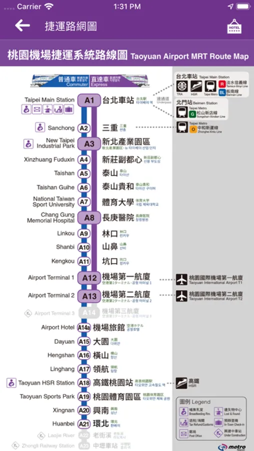 機場捷運地圖路線規劃與票價行駛時間查詢