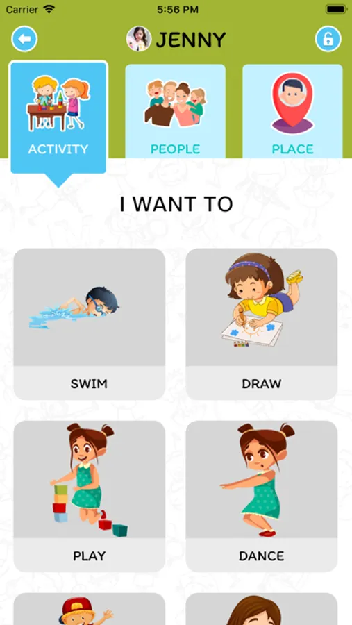 Most children spend a decent amount of time in the requesting stage and this app helps develop children’s ability to gradually request independently, strengthen their use of language through imitation and repetition. Get started today. Customize the activities, people and places to your child’s needs, wants and likes and have fun setting up and rid yourself and child of frustration caused by communication gaps.