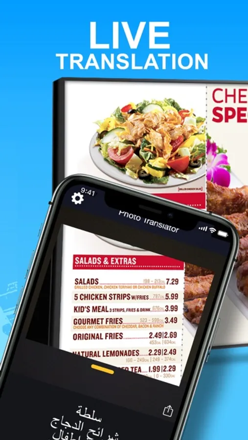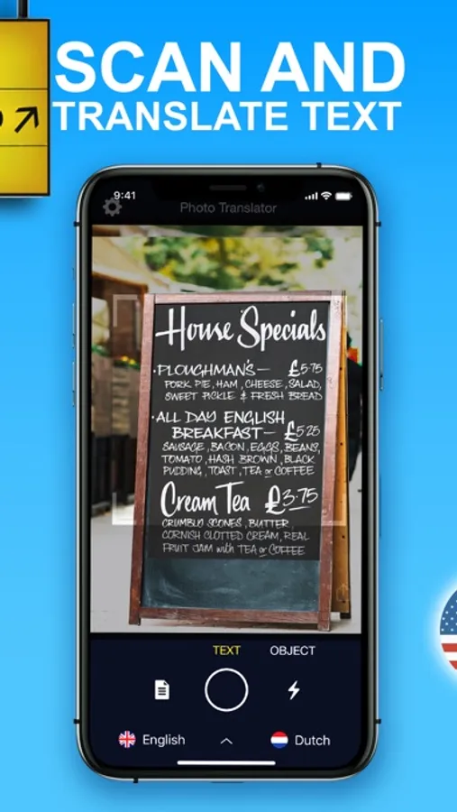 Translate any pic or text using your camera. Easily translate menus, signs, or any paper document.