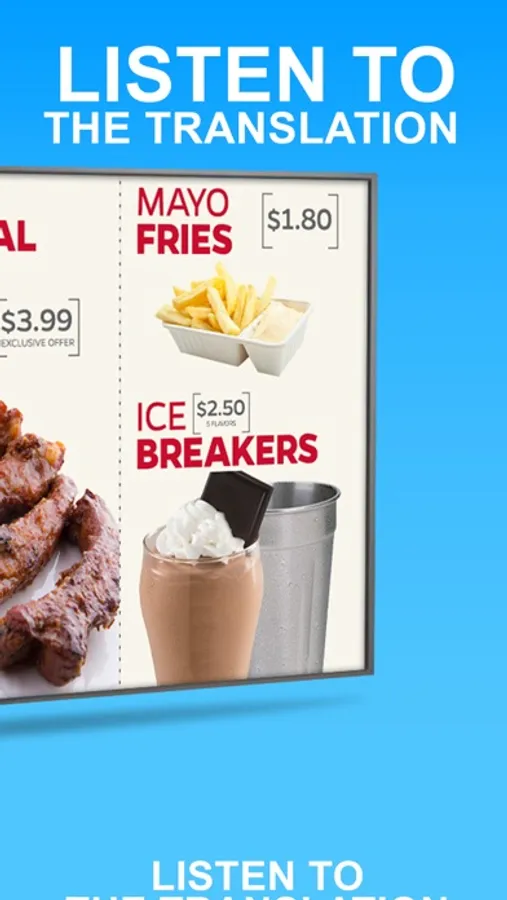 Easily translate menus, signs and maps into 110 languages.