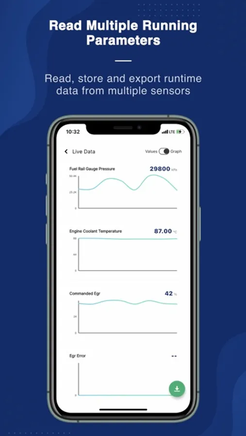 Live Data Monitoring: Monitor over 100 crucial sensor data points across vehicles in real-time, including RPM, speed, coolant temperature, fuel trim and more. GaragePro offers intuitive graphs and customizable displays, empowering you to track your vehicle's performance and make informed decisions. What's more, export your data to Excel to run your analysis.