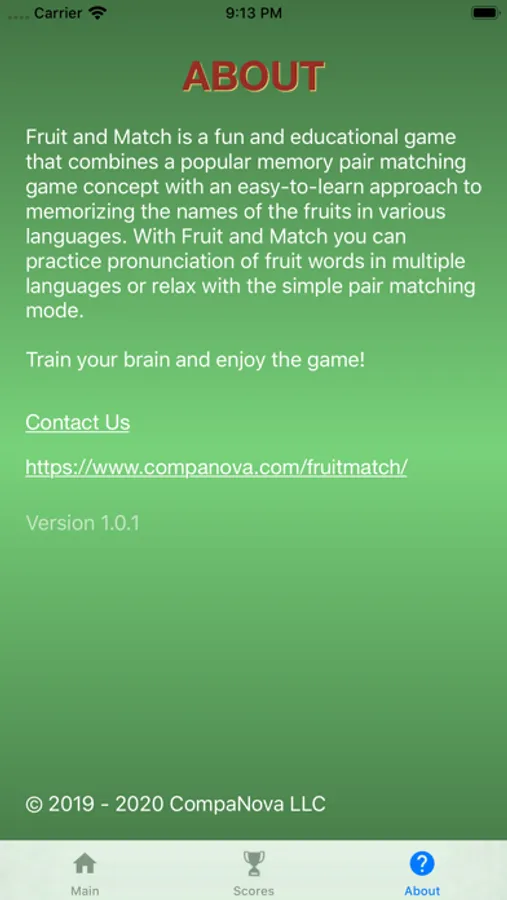 We value the opinion of our customers and are always looking for your feedback and ideas to improve this game. If you have any feedback, questions, or concerns, please reach us at https://www.companova.com/fruitmatch/