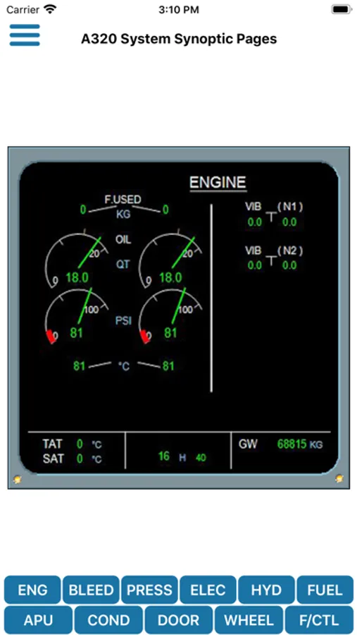 - System ECAM pages: This is only a display of the ECAM pages while every system works normally for your reference.
