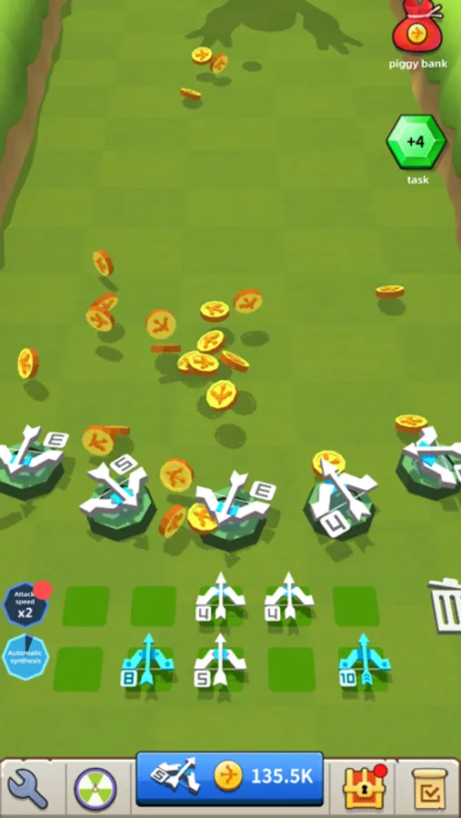 3、Move to combine the same level’s bows to get a stronger bow.
