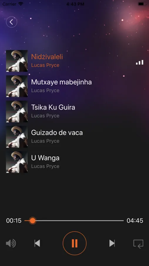 • Permite pesquisar qualquer faixa, artista ou álbum e reproduzir no modo aleatório sem cobrança de dados.