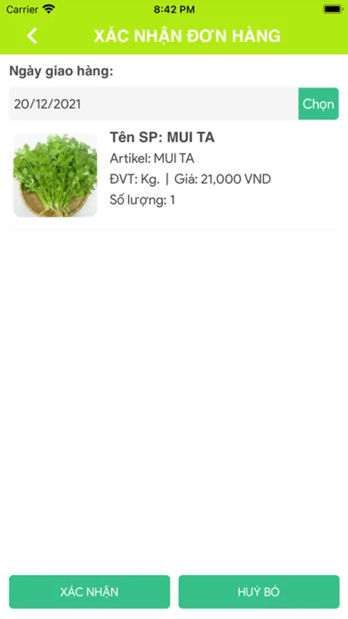 3. Đặt hàng và chờ Rau Qua Ho Huong chấp nhận