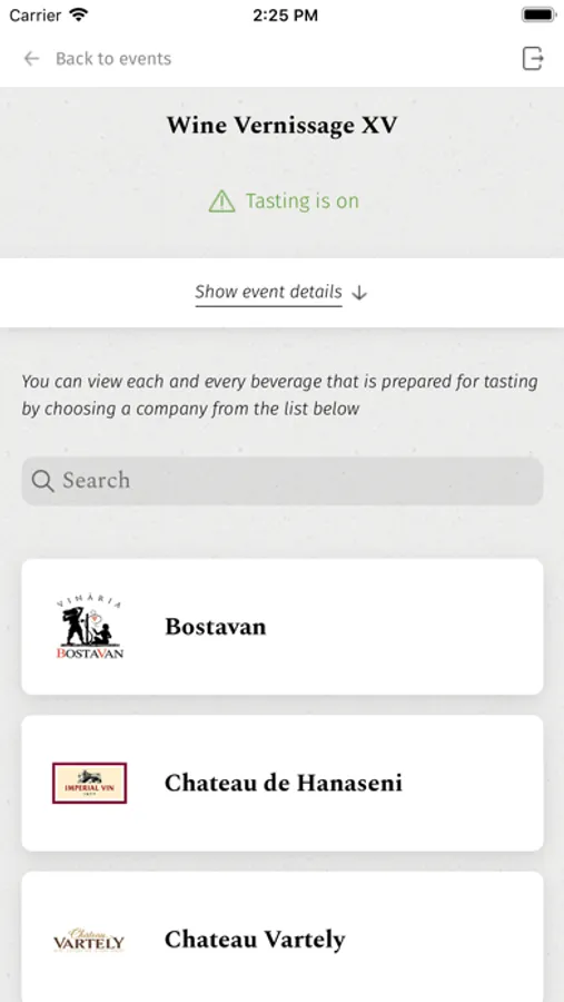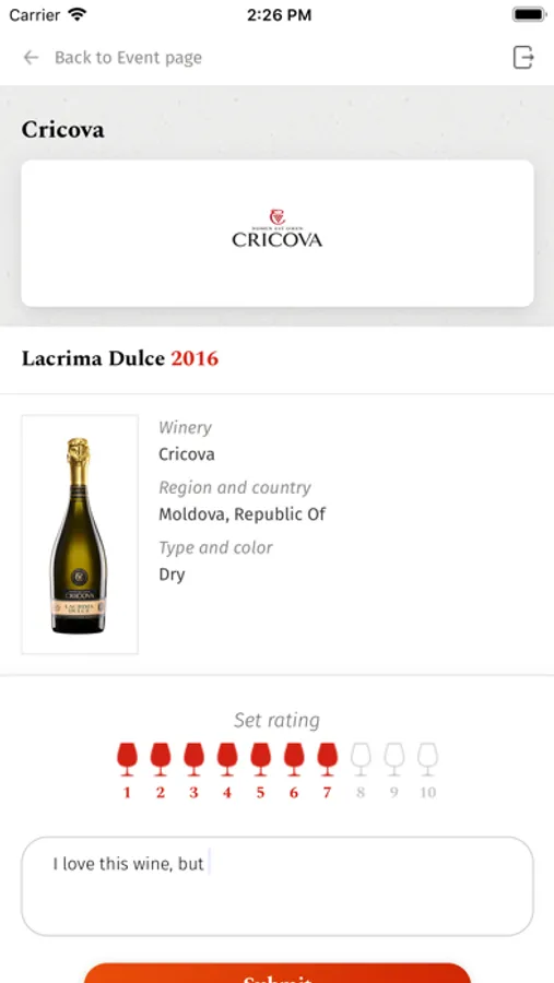 We give a solution to evaluate wines in a transparent and trustworthy manner -based on blockchain technology, that allows to hold different types of events including the International Wine and Spirits Contests compliant with O.I.V methodology.