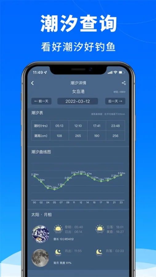 钓鱼天气预报提供全球潮汐预报和潮汐分析。