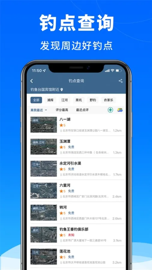 钓点查询:查找附近钓点,黑坑野钓统统都有;