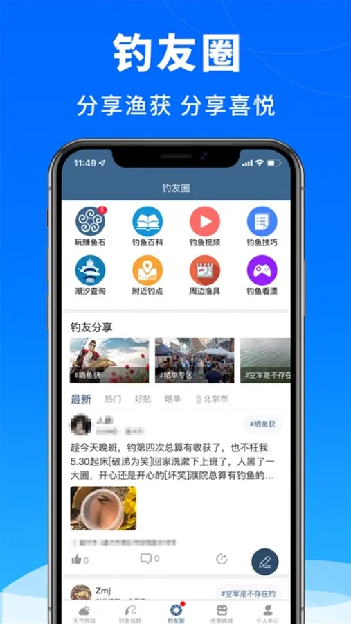 钓友圈:与钓友们一起分享鱼获,交流钓友技巧;