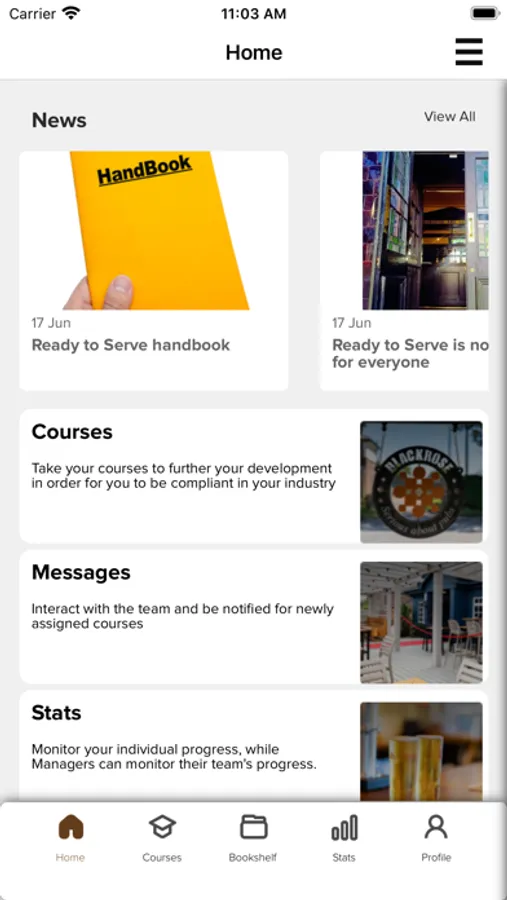 Complete courses, access bookshelf resources, connect with colleagues and keep up to date with company news all with the Blackrose Evo App.