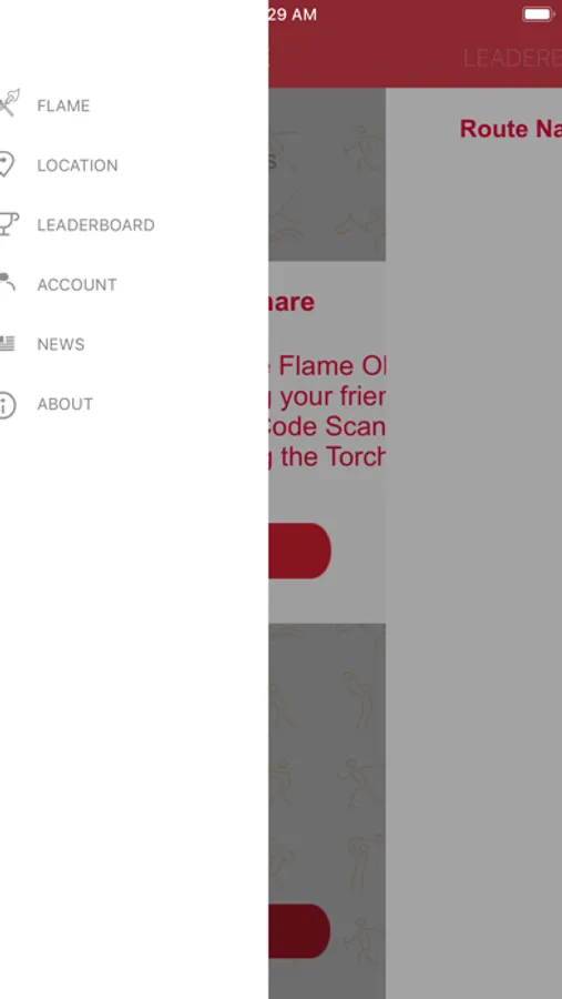 Share button enables the method for sharing. Location provides the opportunity to locate the flames shared by you. User can initiate new routes and each route with the shared count will be described in Leaderboard. News page provides all newly initiated flames in the world.