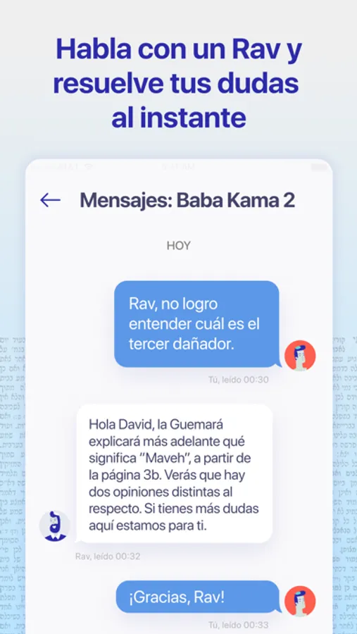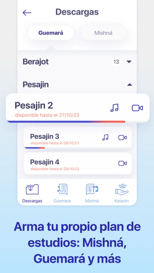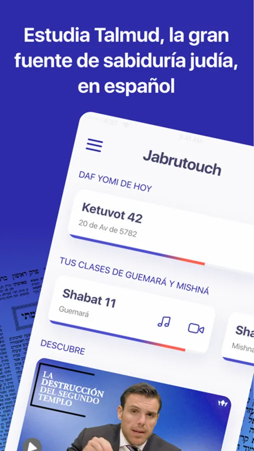 Accede a más de 3000 clases en video o audio. Súmate al programa mundial Daf Yomi y estudia una página por día, o elige tus temas de interés y disfruta del Talmud a tu ritmo.
