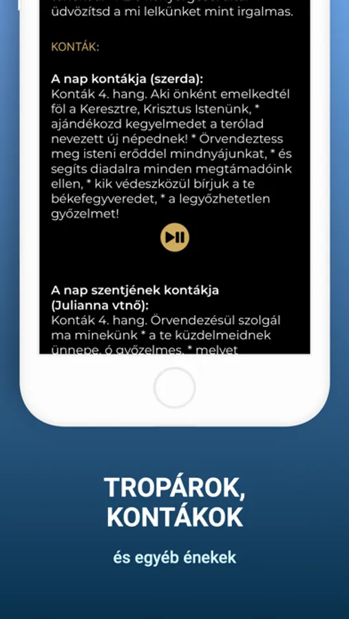 A magyarországi görögkatolikusokra vonatkozó napi apostoli és evangéliumi szakaszok, a nap szentjének rövid életrajza, tropárok, kontákok, egyházi ünnepeink, imádságok, egyéb tudnivalók.