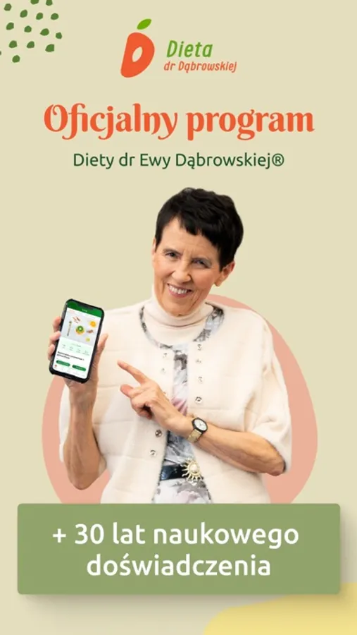 Dieta jest zgodna z zaleceniami żywienia, o których możesz przeczytać w publikacjach naukowych. Odwiedź https://app.ewadabrowska.com.pl/info lub zakładkę "Info" w aplikacji.
