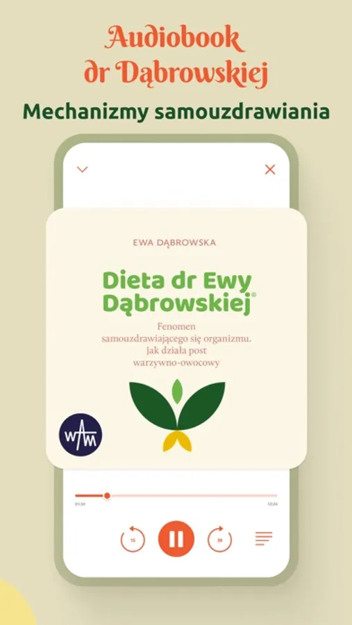 Audiobook "Fenomen samouzdrawiającego się organizmu. Jak działa post warzywno-owocowy" na podstawie rewolucyjnej książki dr Ewy Dąbrowskiej dostępny od teraz tylko w aplikacji. Posłuchaj o fenomenie postu i jeszcze skuteczniej zadbaj o zdrowie.