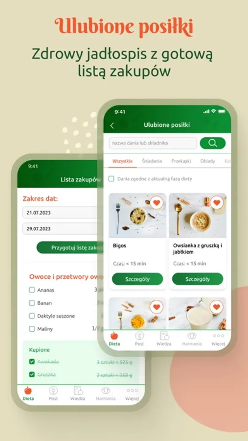 - Lista zakupów — to gotowy spis produktów, które ułatwią planowanie posiłków,