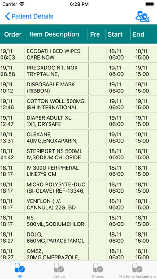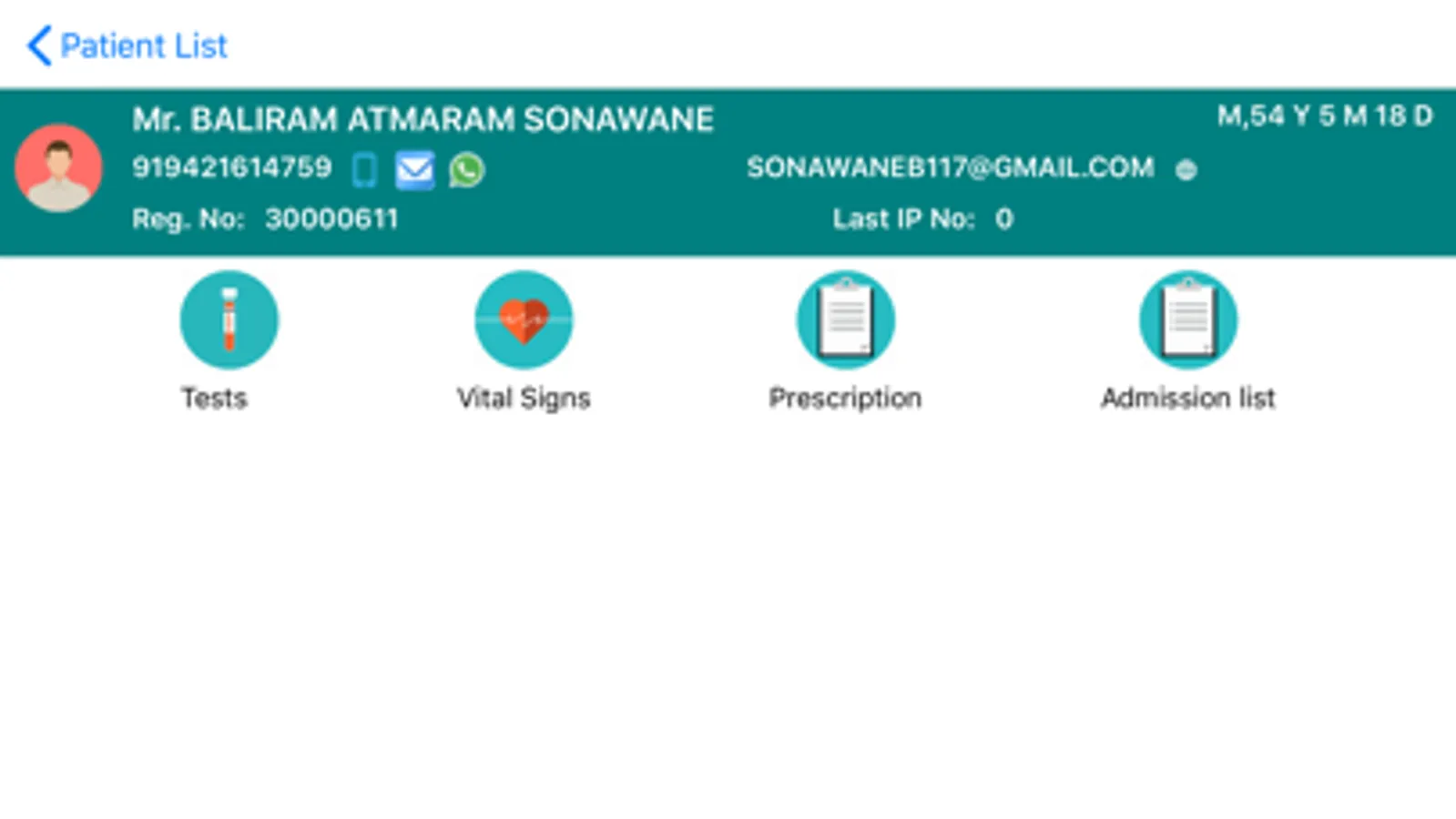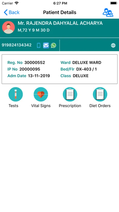 Patient’s diet, current medical prescription can also be viewed at any