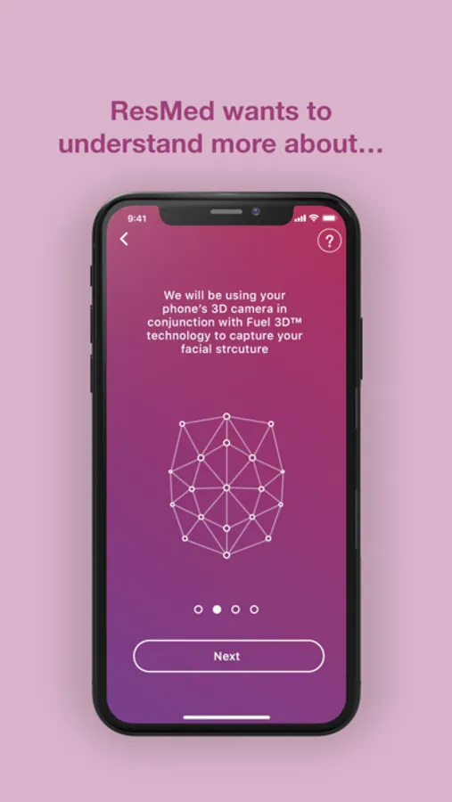 The app enables you to create a 3D scan of your face, and securely send that to ResMed's R&D team. ResMed will collect personal information including 3D facial scan data, and feedback on your experience with your CPAP mask. This will enable our R&D team to improve future masks, and other related products & services for you and millions of other CPAP users.