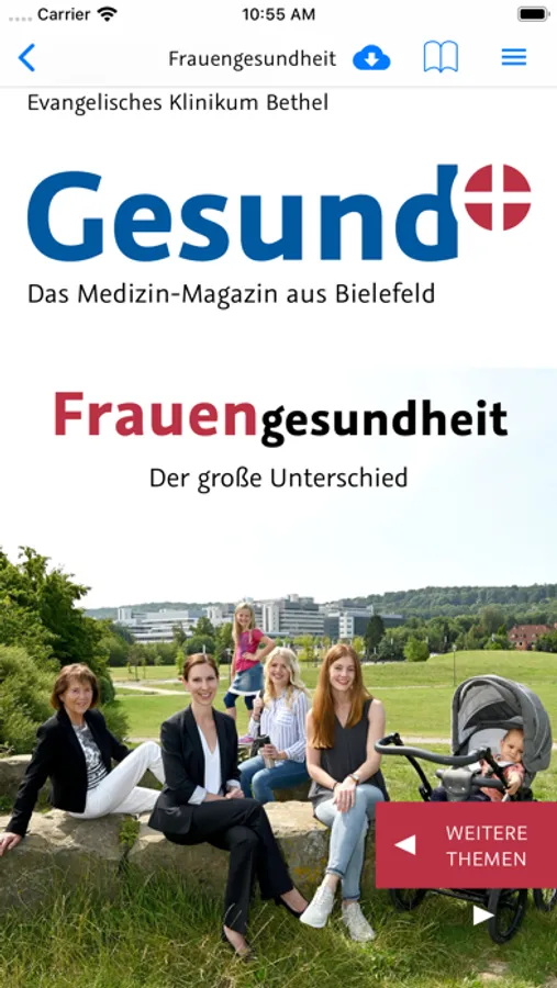 EvKB+ bietet Magazine und Informationsangebote rund um das Evangelische Klinikum Bethel. Hauptbestandteil der App ist das Medizin-Magazin „Gesund+“. Lesen Sie darin bewegende Patientengeschichten, erfahren Sie alles Wissenswerte rund um unser Krankenhaus, lernen Sie unsere Ärzte-, Pflege- Therapeutenteams in informativen und gleichzeitig unterhaltsamen Interviews und Porträts kennen. Zusätzlich stellen wir Ihnen hier aktuelles Infomaterial zur Verfügung.