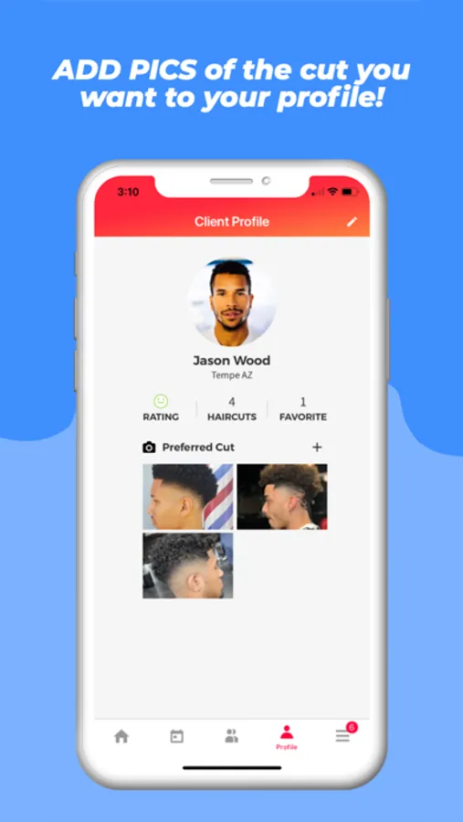 If you’re a client, you can display photos of your preferred haircut on your profile, so barbers know exactly what you want before they arrive to your appointment.
