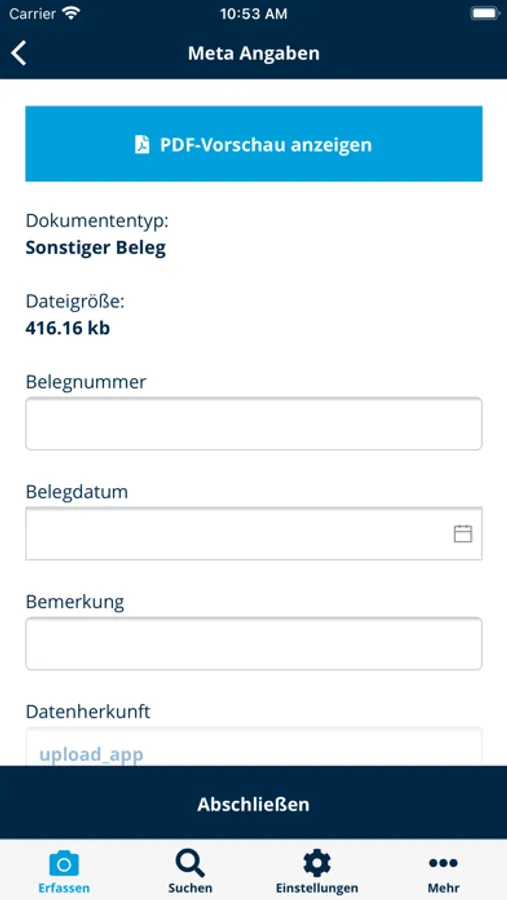 - Beleg- und Metadatenanzeige