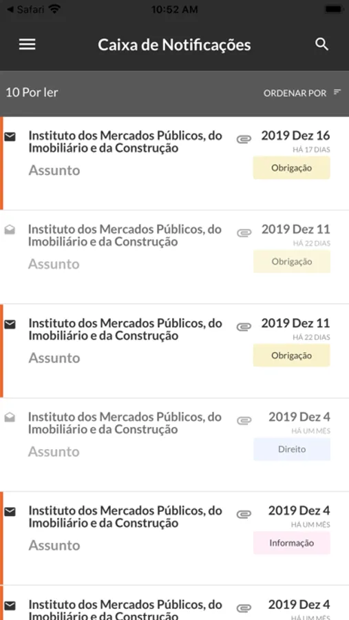 Consultar notificações de várias entidades num único local;