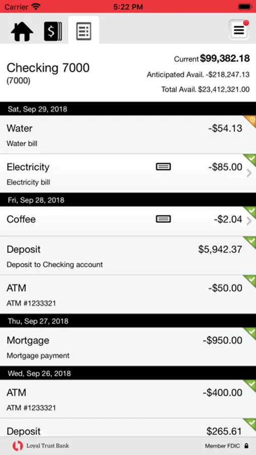 • View deposit history in the app