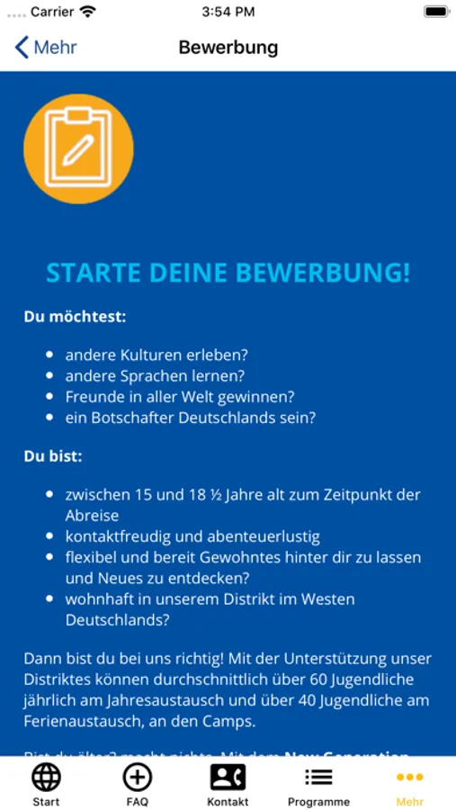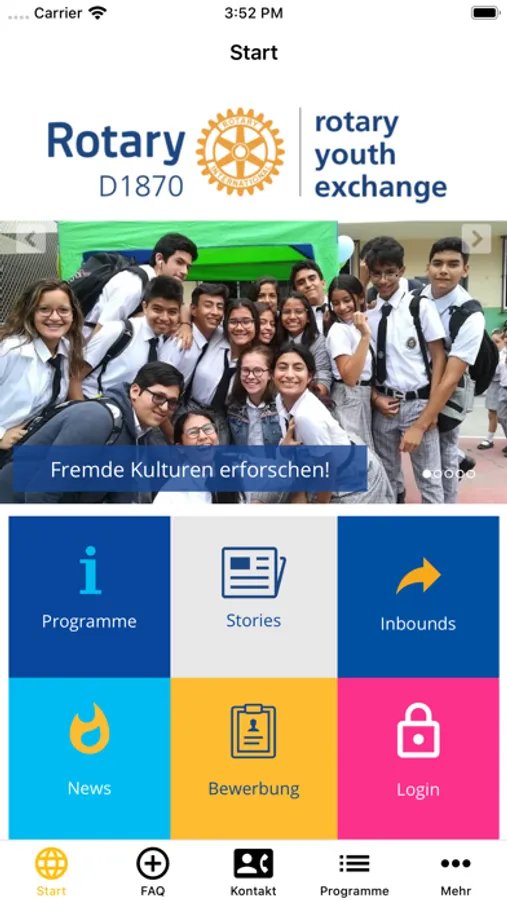 Mit dieser App kannst du dich über einen Austausch mit Rotary informieren und die ersten Schritte in Richtung deines Austauschjahres wagen.