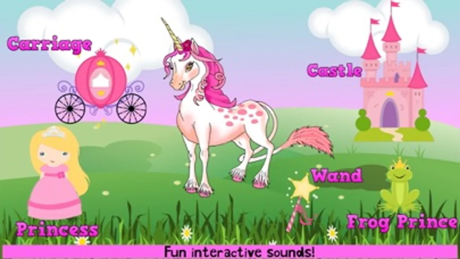 Little fingers love to tap, tap, tap, and the tap sounds are super fun and exciting because they get to tap and reveal a hidden unicorn! The first screen will appear with just one object, like a sea shell, heart, or diamond and every time you tap it another cute item will appear that goes along with the cute theme. Each object that appears is interactive fun because when they tap the objects, such as a dolphin in the under the sea tap sound, they will hear the sound it makes and see that object change color. And then when the hidden unicorn pops out the page turns into an interactive flashcard, with the words appearing beside everything that appeared, and when you tap it now it will say the what it is. It’s a creative and fun way to learn through play and teach letter and word recognition!