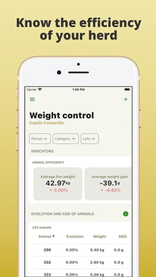 Create lots, monitor reports and organize your herd, increasing the health of your animals.
