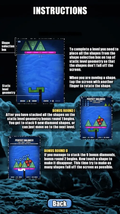 Stack blocks and don't let them fall off the screen. 380 levels! Can you solve all the puzzles? Contains all five classic Perfect Balance games with enhancements and two new bonus modes.