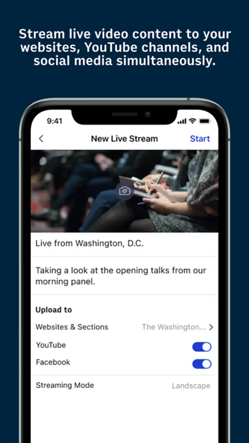 Arc XP lets you start a live stream from the office or while out in the field that can be distributed on your website — and to social media simultaneously.