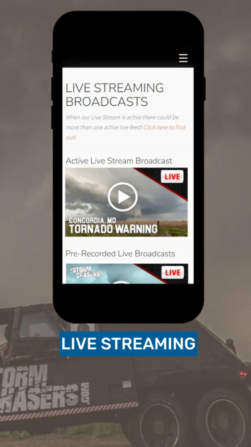 The Live Storm Chasers network is an extreme weather platform, featuring live weather trackers including TIV 2 (The Tornado Intercept Vehicle), national and regional forecasts, interactive live vlogs, and so much more!