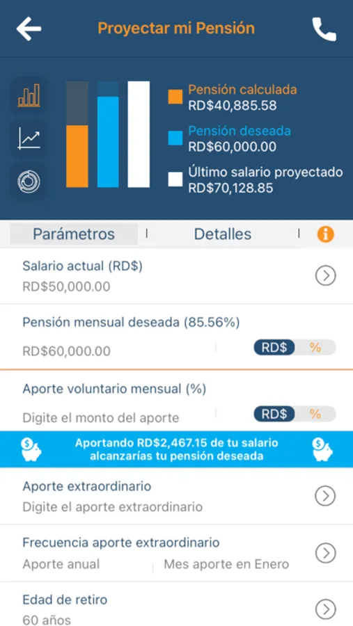 * Realizar proyección de pensión y cálculo de aportes.