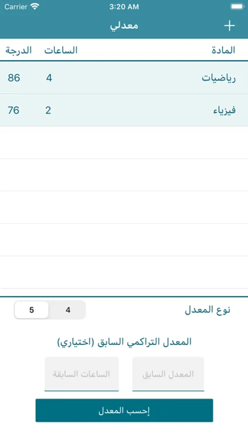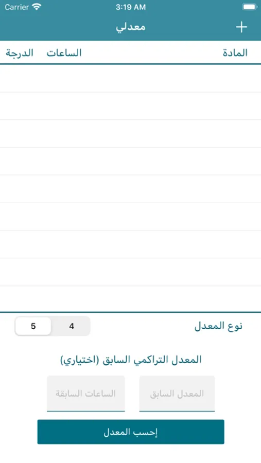 تطبيق لحساب المعدل الجامعي يتيح اختيار حساب المعدل من ٤ او ٥ سواءً كان فصلي او تراكمي بطريقة سهله ذو تصميم سهل وبسيط.