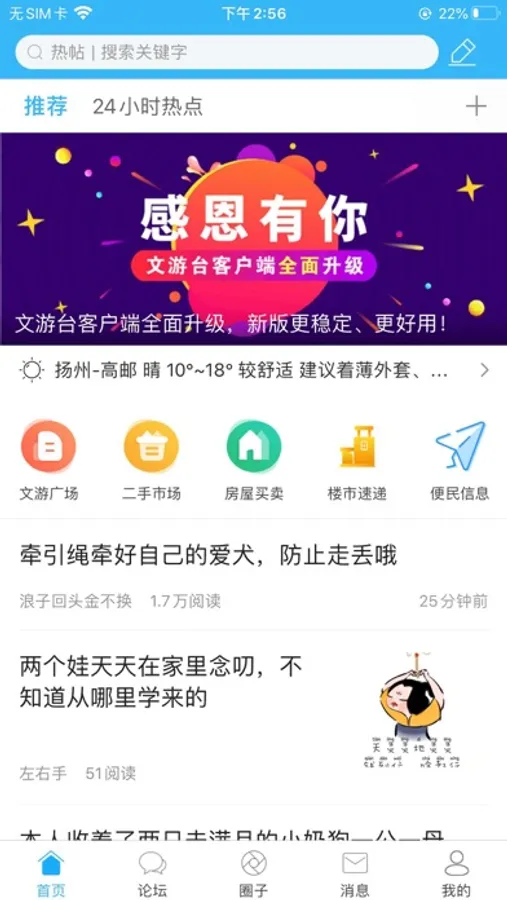 文游台客户端(wenyoutai.com)是受高邮人信赖的人气和影响力生活消费类的社交应用,80万高邮人的选择。大家在这里讨论热点信息、爆料新鲜八卦、分享消费经验、晒出私藏美图、参与互动活动围绕衣、食、住、行、游、乐、购等刚需领域,无所不包。我们致力于为高邮人提供便捷的社交空间和贴心的本地生活服务。本地精彩生活,上文游台就够了!