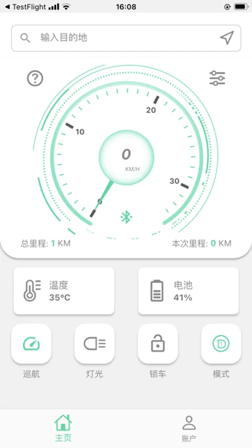 通过蓝牙与电动车相连接,可以让用户看到电动车当前的状态,包括行驶速度、当前里程、累计里程、电量、档位、灯状态等;同时用户也可以通过应用程序对电动车进行有限的控制,如开关灯、档位切换等;该程序也实现了让用户实现电子锁车以及在线更新电动车系统等功能。