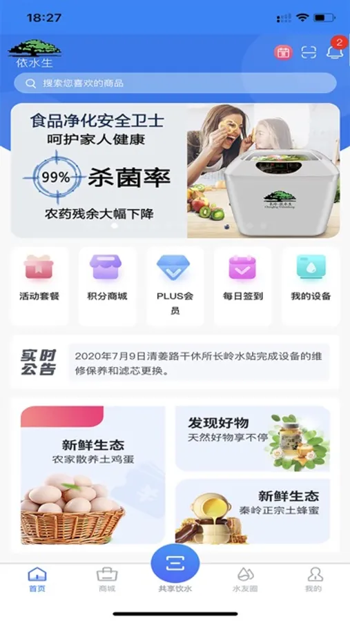 现公司业务主要针对小区社区提供优质桶装水、自助用水等服务,并且依靠互联网平台,用户可以通过手机APP实现在线注册、充值、查询、消费、意见反馈等功能,并且能对水质情况进行在线实时检测,确保用户使用:健康水、透明水、放心水。