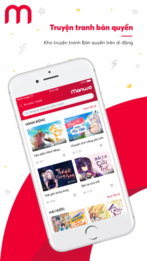 Manwa là Ứng dụng đọc truyện tranh trên điện thoại. Tất cả các truyện đều là truyện tranh bản quyền, có màu. Hàng trăm đầu truyện HOT với nhiều thể loại hấp dẫn như Comedy, Drama, Fantasy, Romance… được cập nhật liên tục trên Manwa.