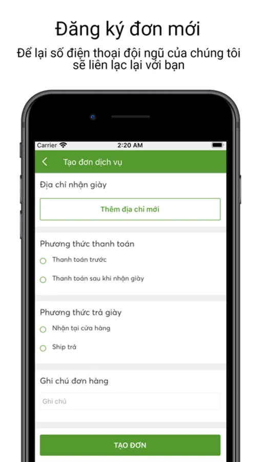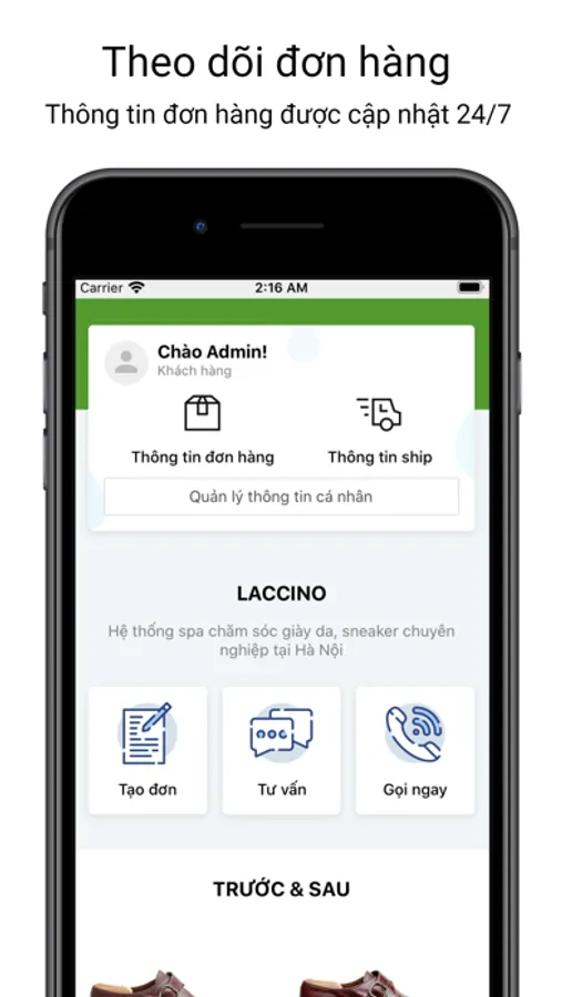 2) Gửi giày tới Laccino: Trực tiếp hoặc ship giày tới shop