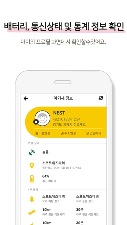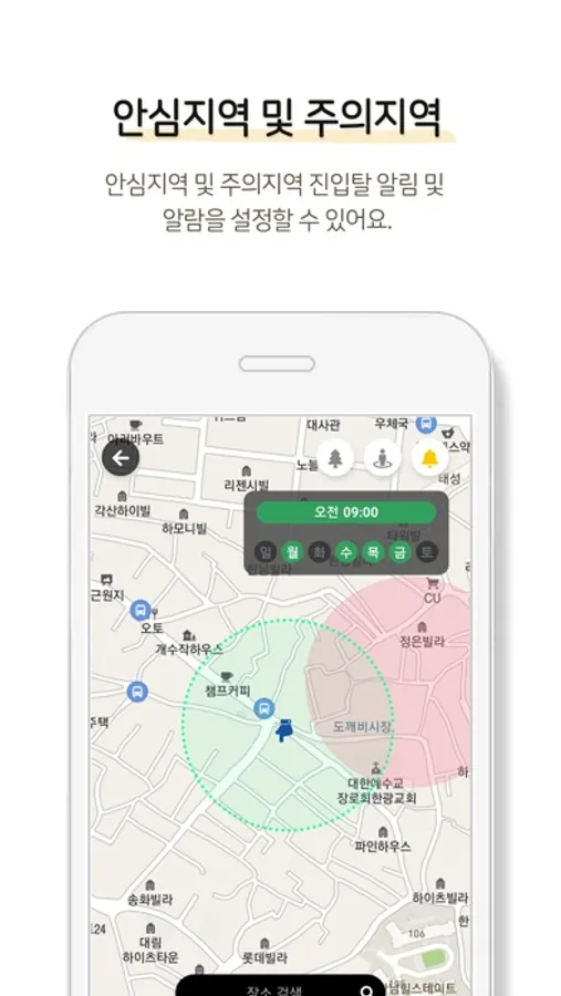 ◼ 집, 학교 등 주요 장소(둥지) 사용으로 위치 이탈 시 알림 기능