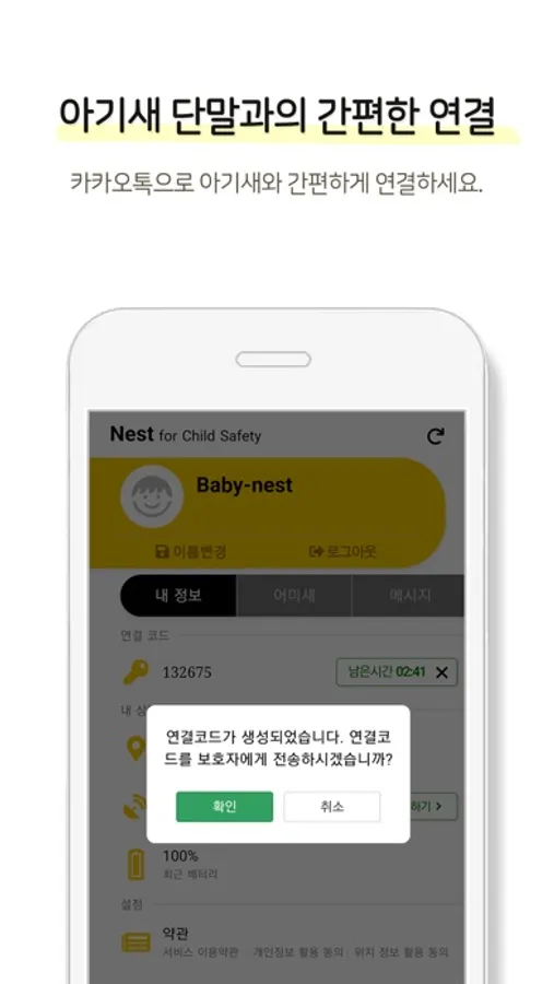 어미새와 아기새가 서비스에 가입하여 서로 연동 후 서비스 이용 가능합니다.